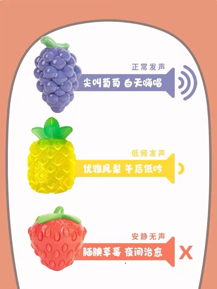 FOFOS两只福狸 缤纷水果系列狗狗洁齿玩具 耐咬洁齿 音量可选