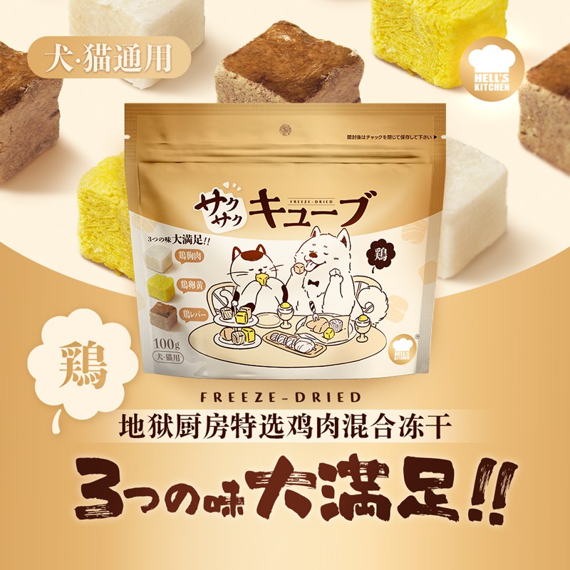 Hell's Kitchen地狱厨房 大满足 犬猫通用 鸡胸+蛋黄+鸡肝混合冻干零食 100g