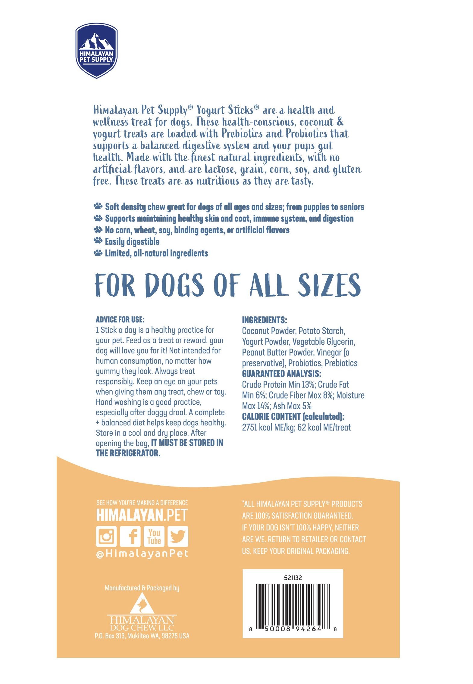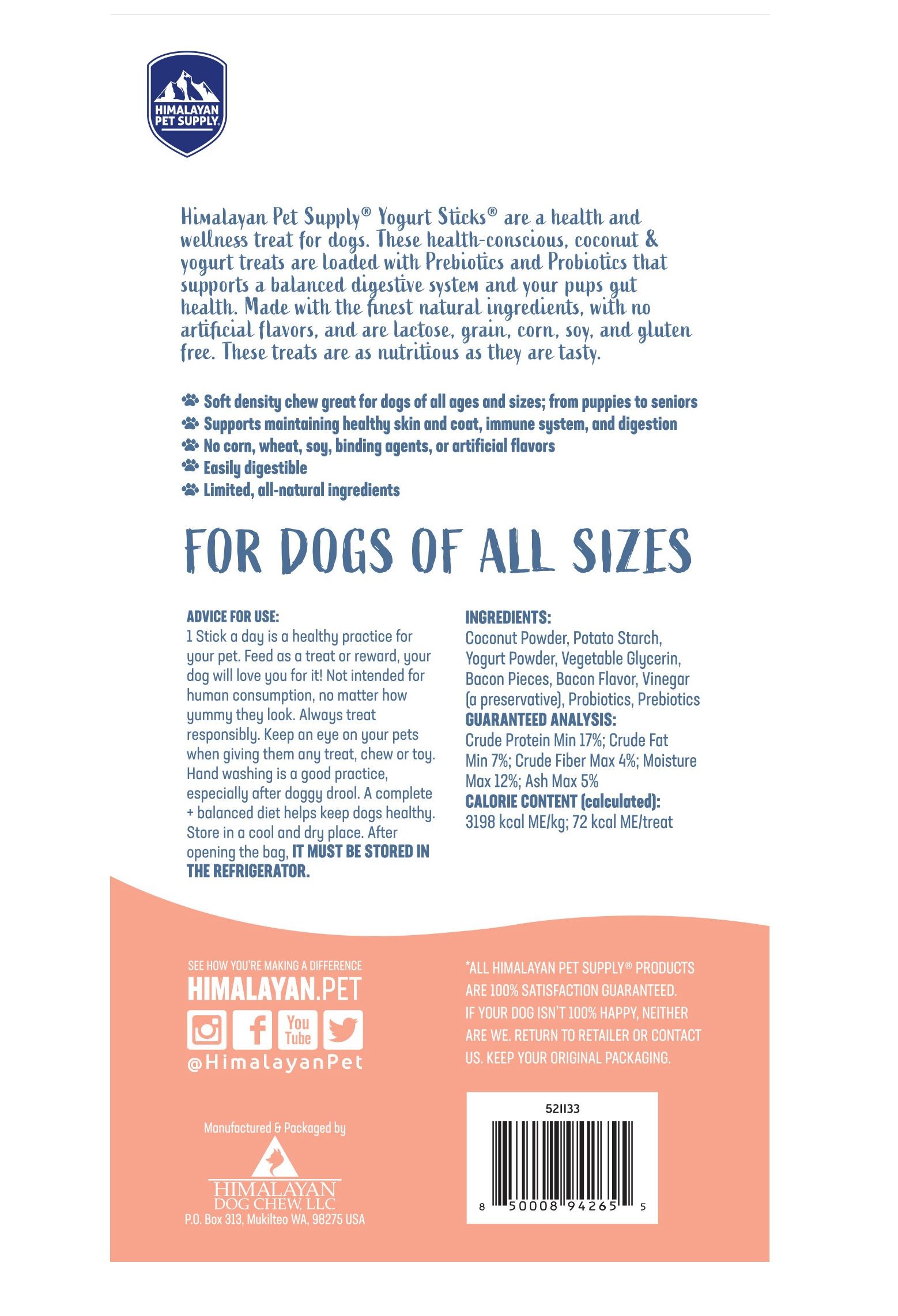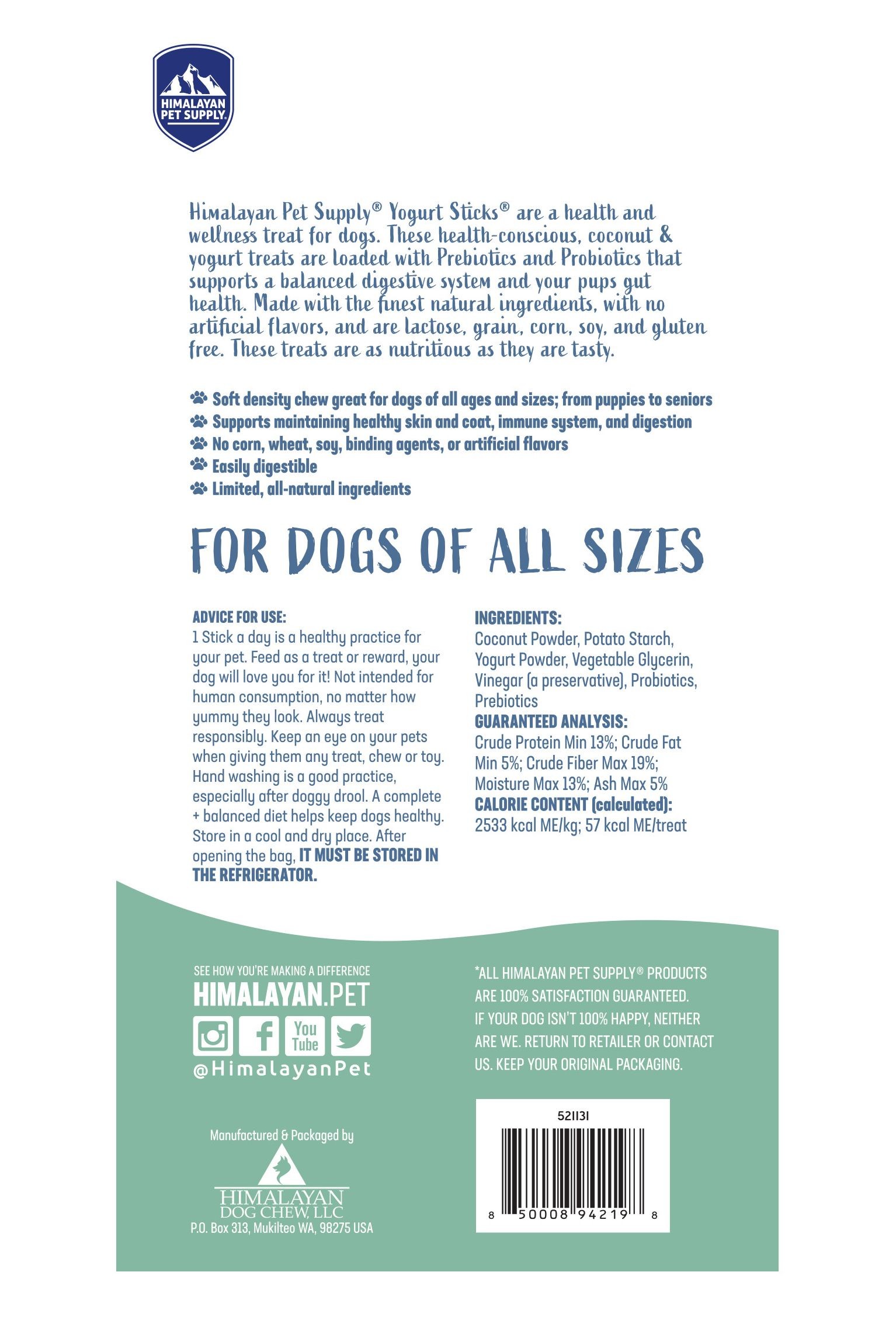 Himalayan 犬用全犬期酸奶磨牙棒 全天然易消化 添加益生菌 4.8oz