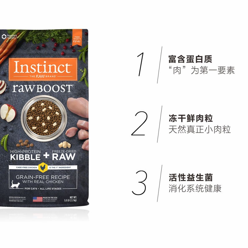 Instinct百利 原食生鲜系列鸡肉猫粮 干粮+冻干 成猫幼猫主粮长肉发腮