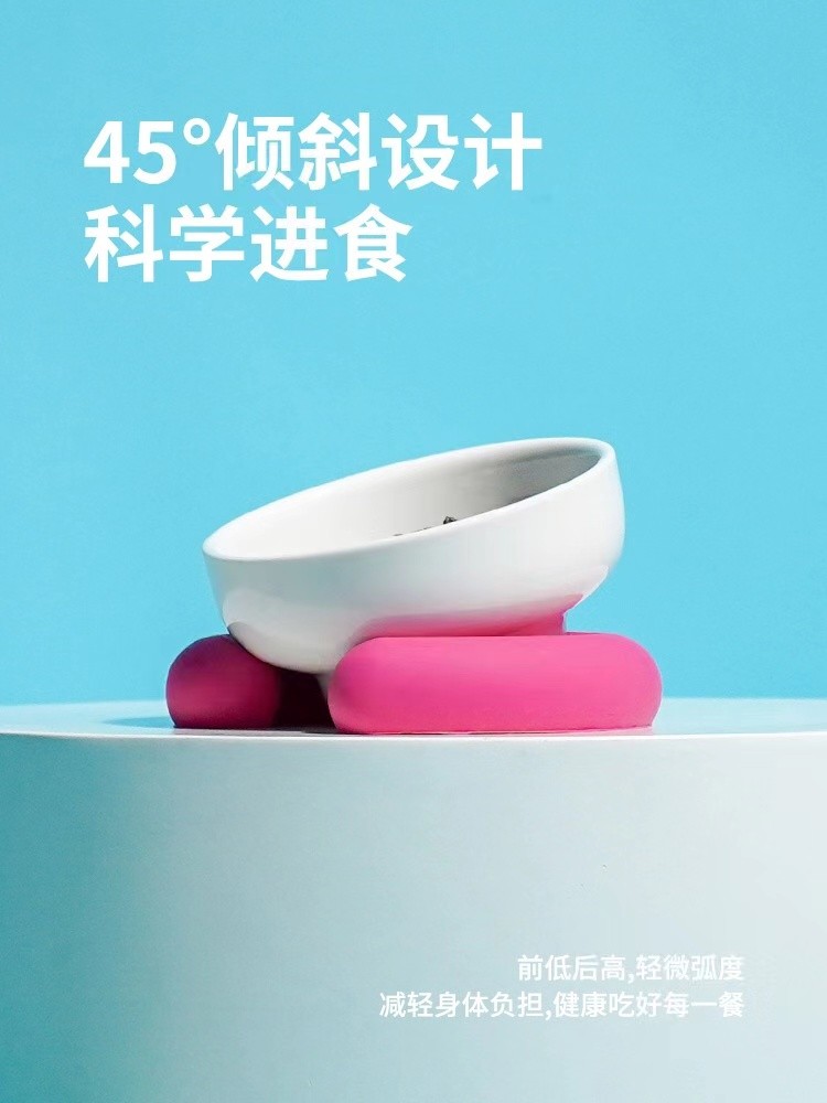 ZEZE 新色圈圈宠物陶瓷碗 猫碗 狗碗 预防黑下巴 硅胶底座防滑 单碗